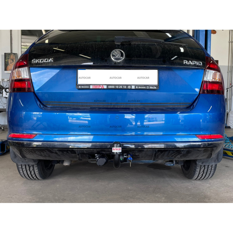 Ťažné zariadenie s odnímateľným vertikálnym bajonetovým systémom pre automobil SKODA - typ:RAPID, modelová rada: Spaceback. Rok výroby automobilu: od 2013/-.