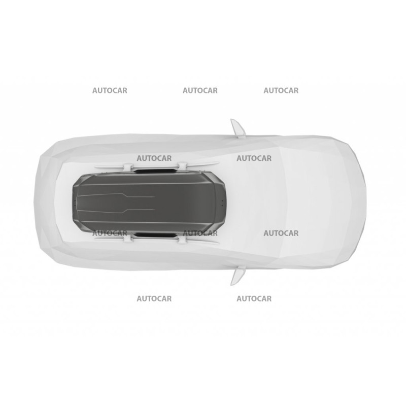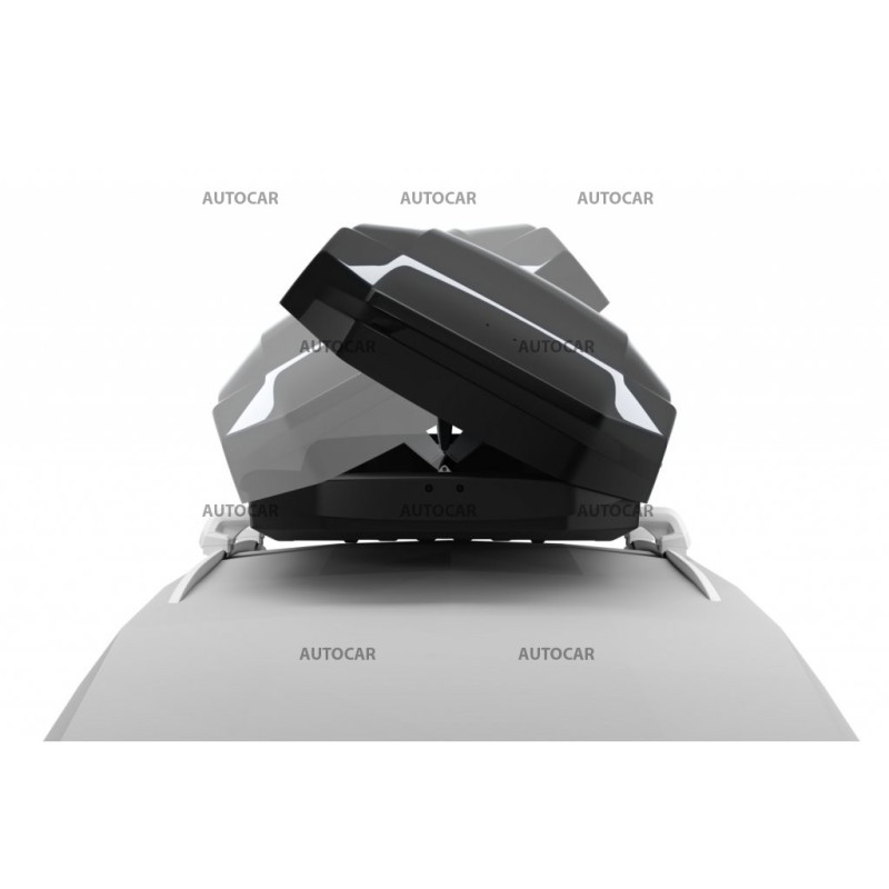 Strešný box so štýlovým dizajnom a veľkorysým priestorom. Robustné veko zaisťuje ľahké otváranie a zatváranie.