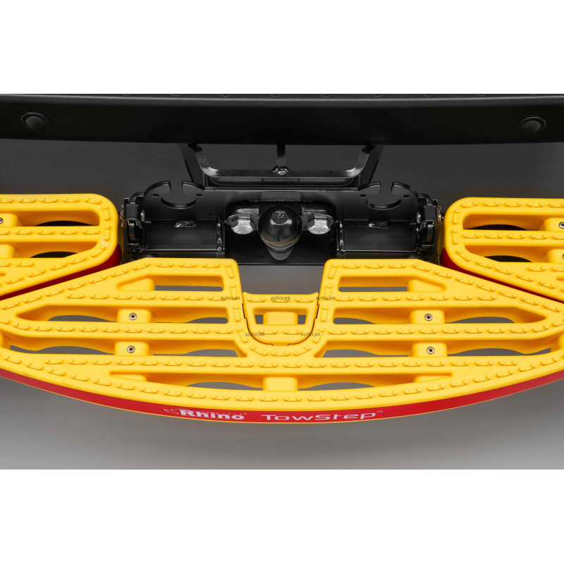 Nástupný schodík pre vozidlá s ťažným zariadením v celej šírke, s unikátnou jednoducho odnímateľnou stredovou časťou. Kompatibilný so širokou škálou ťažných zariadení v celej Európskej únii. Protišmyková plocha pre bezpečný úchop, s pevným oceľovým nosným rámom, ktorý zaručuje maximálnu odolnosť proti korózii vďaka unikátnemu procesu s dvojitou vrstvou elektrolytického základného nástreku. Bočné nástupné schodíky vo forme krídla umožňujú pohodlný náklon až 110° pre pripojené prívesy. Dostupný v čiernej a žltej farbe. Možnosť s alebo bez senzorov cúvania a s funkciami Connect+. Podrobený rozsiahlým interným zaťažovacím skúškam pre maximálnu spoľahlivosť a bezpečnosť.