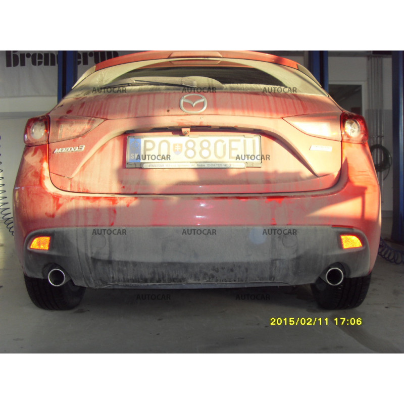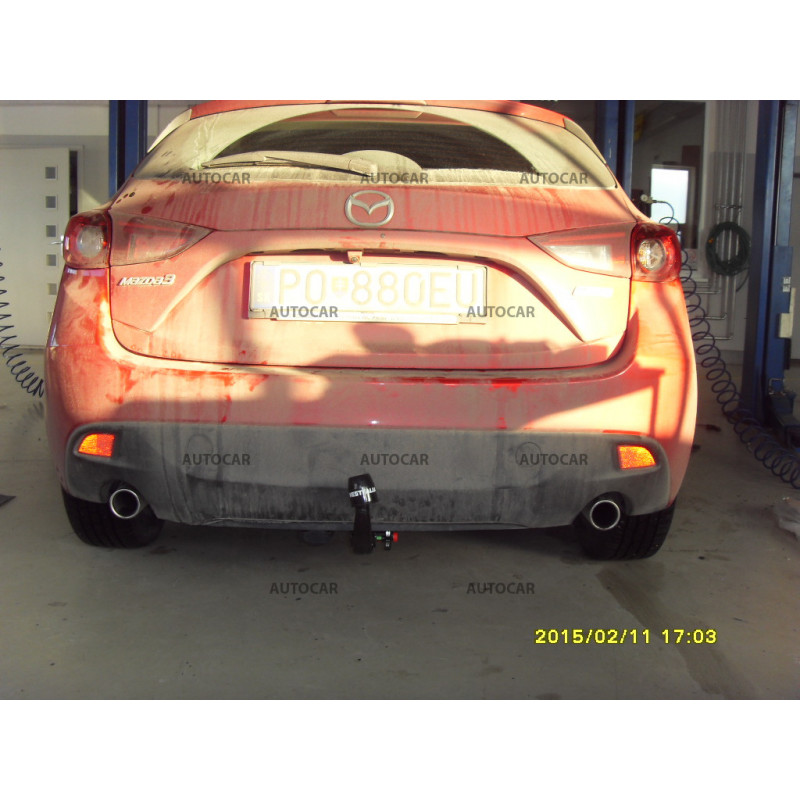 Ťažné zariadenie s odnímateľným vertikálnym bajonetovým systémom pre automobil MAZDA - typ: 3, modelová rada: 5 dv.. Rok výroby automobilu: od 2013/-.