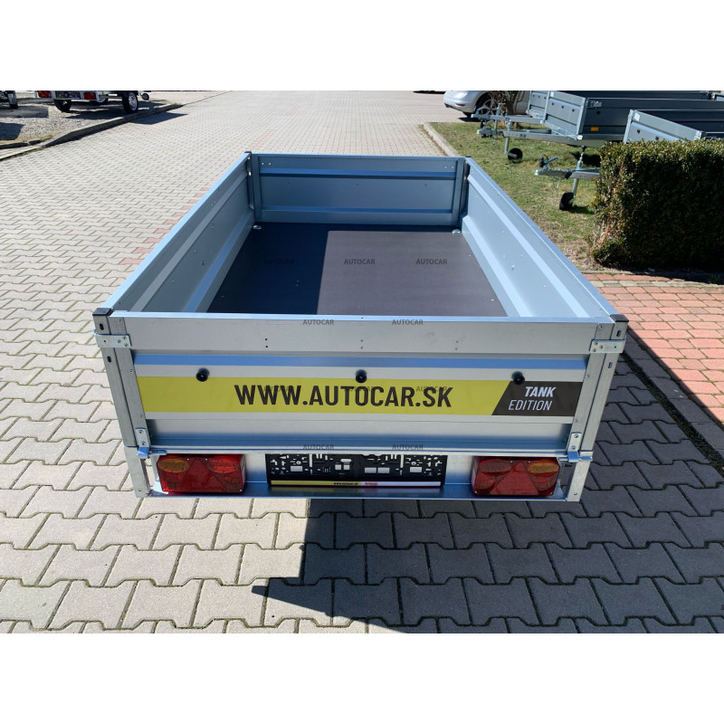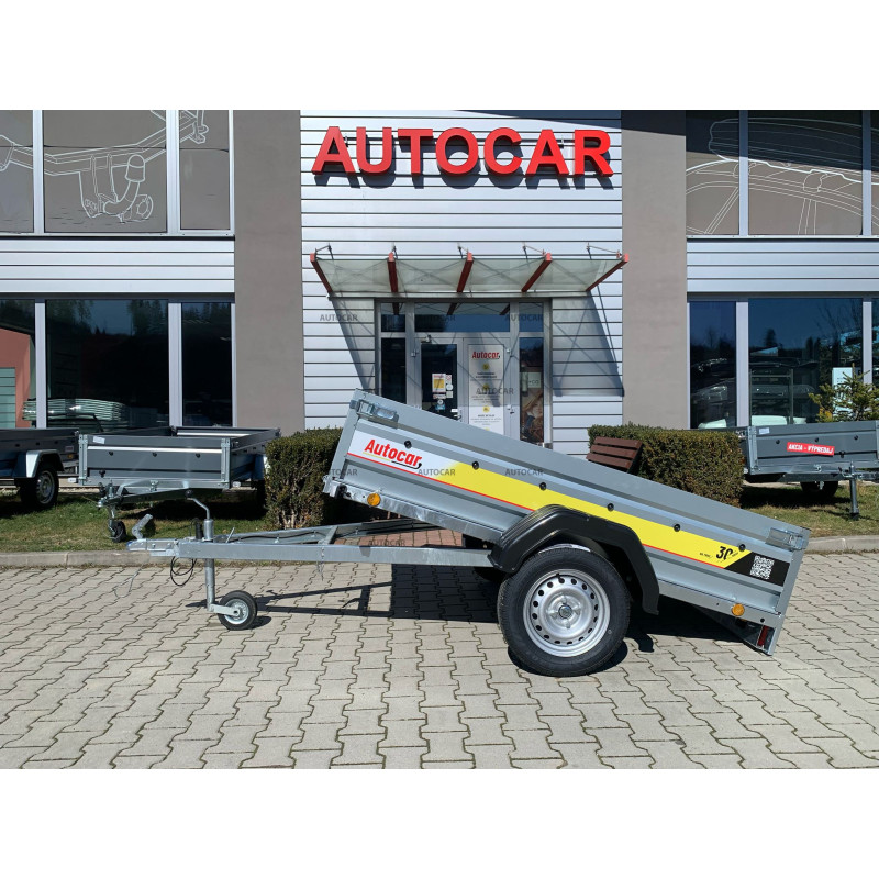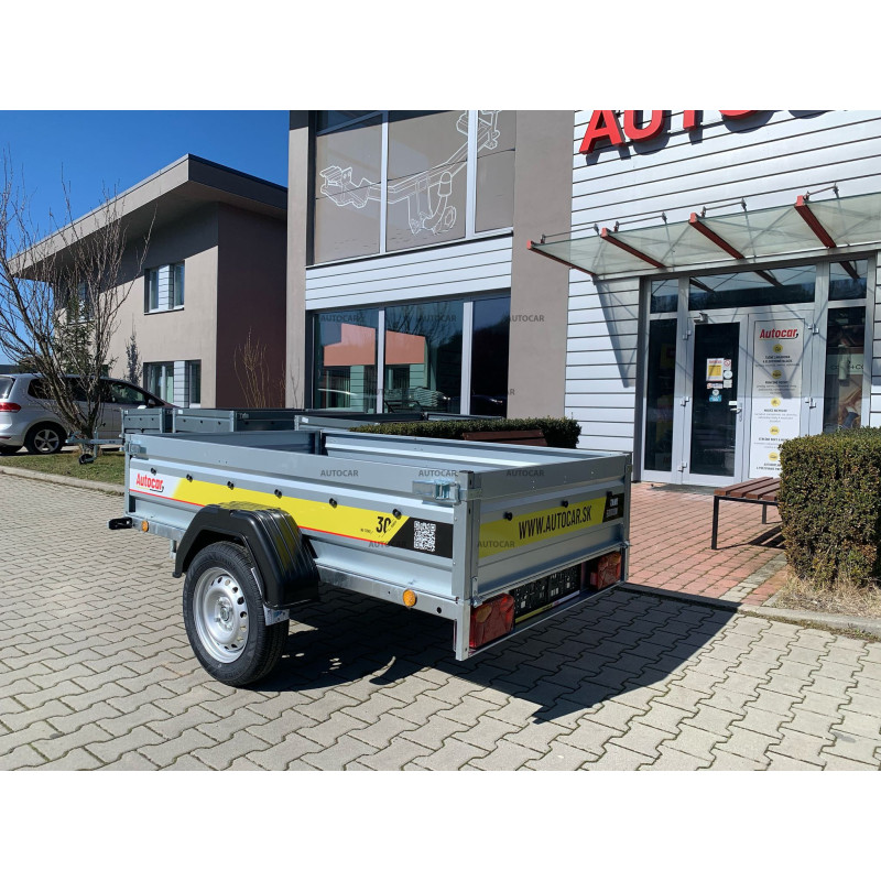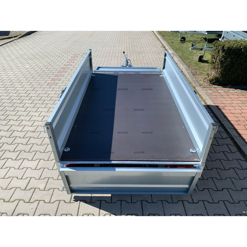 Robustný zváraný jednonápravový nebrzdený príves a 3x priečnym vystužením a sklápaním ložnej plochy zabezpečuje stabilitu a odolnosť. Ložná plocha 2060 × 1230 mm s bočnicami 390 mm (hrúbka 1 mm) poskytuje dostatok priestoru. Vodeodolná preglejková podlaha a štyri podlahové oká umožňuje bezpečné uchytenie nákladu. Vozík má sklopnú konštrukciu na oji (7,5 cm) pre jednoduché nakladanie, predné otváracie čelo a oporné koliesko v cene. Spoľahlivý a praktický pomocník na prepravu rôzneho nákladu.