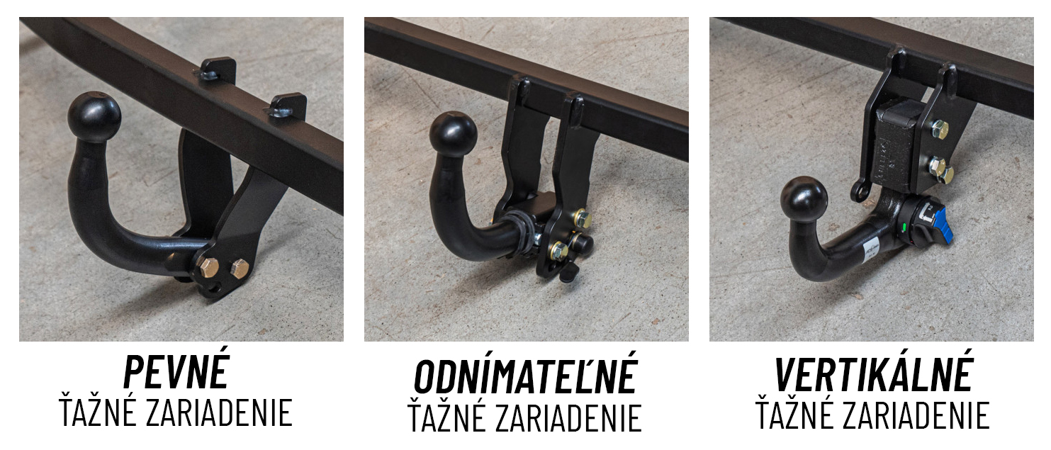 Pri výbere ťažného zariadenia sa musíte rozhodnúť, či vám vyhovuje skôr pevné alebo odnímateľné ťažné. V praxi sa stretávame s tromi hlavnými typmi:
