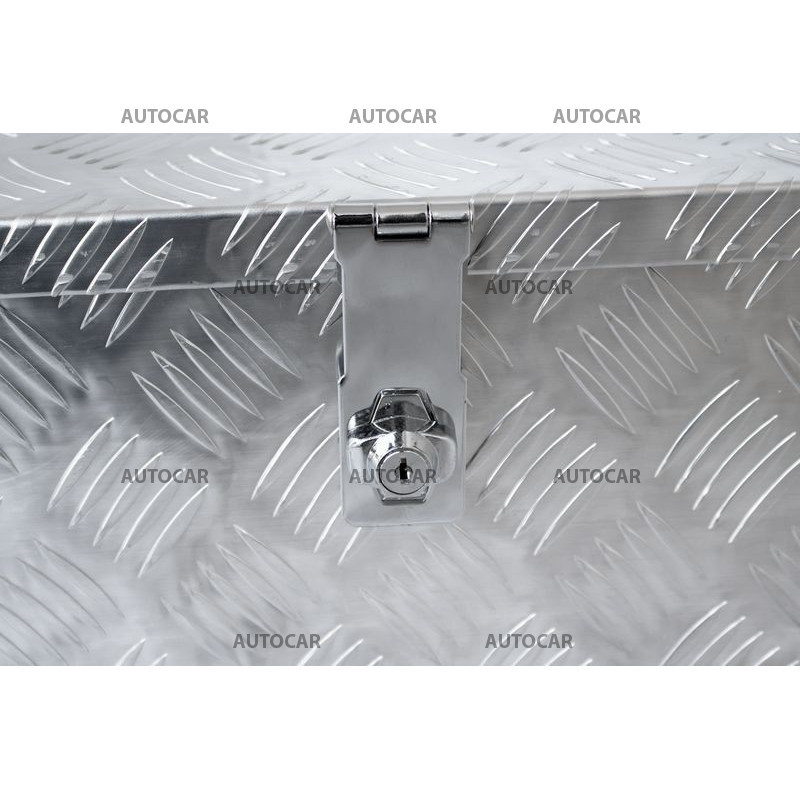 Masívny hliníkový box na odloženie rozličných materiálov a nástrojov. Pogumované rukoväte s pružinou, pri odložení sa zasunú. Žiadne ostré hrany, uzamykateľný.