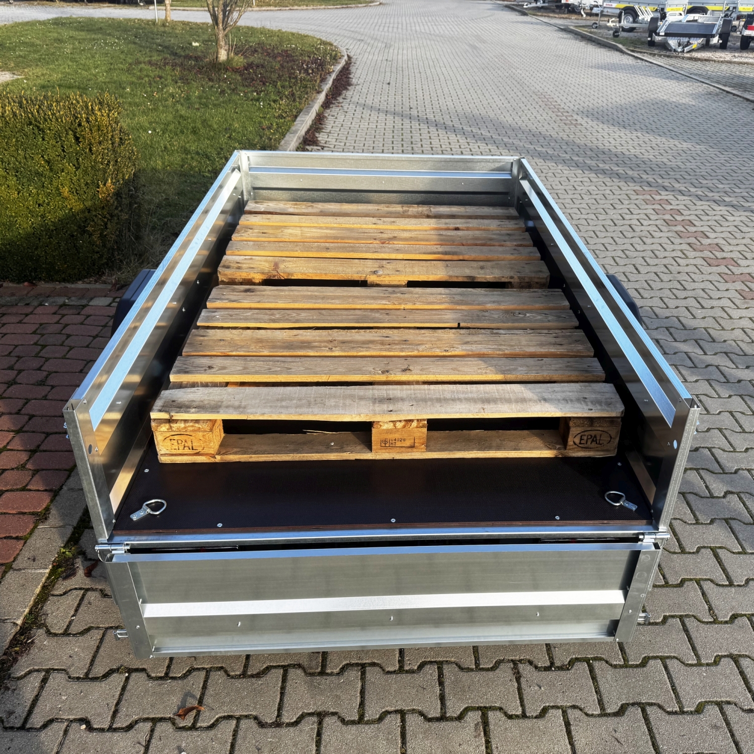 Jednonápravový nebrzdený prívesný vozík s celorámovou konštrukciou výšky 6cm a s dvoma priečnymi výstuhami zabezpečuje vysokú pevnosť a stabilitu aj pri plnom zaťažení. Pre bezpečné uchytenie nákladu sú v podlahe umiestnené štyri kotviace oká. Vozík je vybavený silnými profilovanými bočnicami vyrobenými z pozinkovaného plechu, čo zaručuje dlhú životnosť a ochranu proti korózii. Zadná bočnica je otvárateľná a odnímateľná, čo uľahčuje nakladanie a vykladanie tovaru.