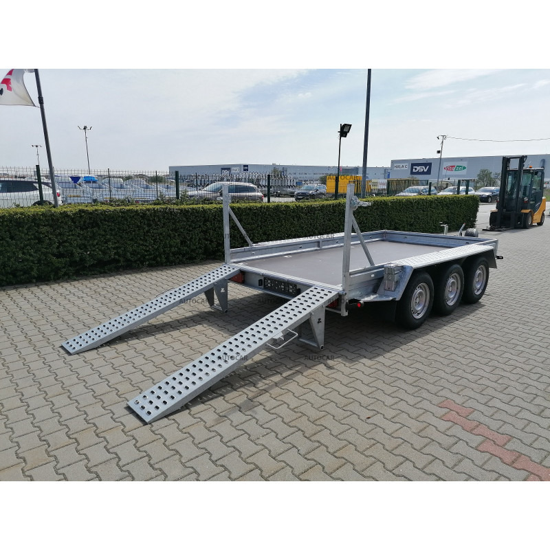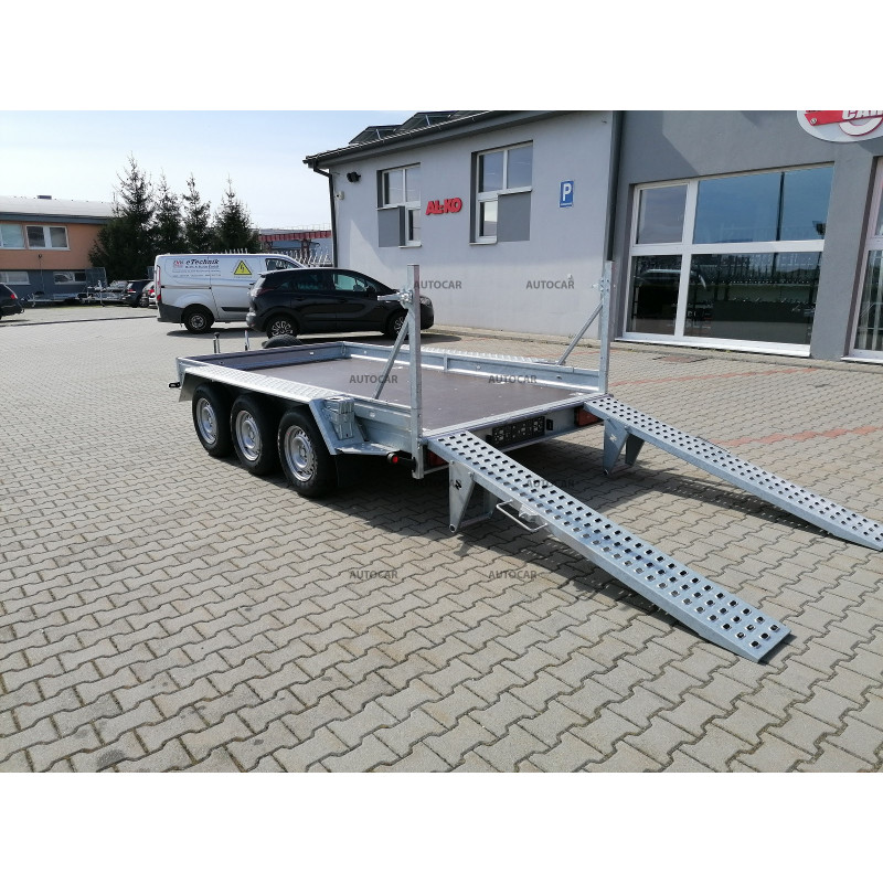 Trojnápravový brzdený prívesný vozík na prepravu stavebných strojov s kolesami uloženými vedľa ložnej plochy. Jednoduché naloženie stroja je zabezpečené pomocou nájazdov. Železné bočnice prívesu sú zvárané (spojené) priamo s rámom prívesu, vďaka čomu sú veľmi odolné. Konštrukciu tvorí robustná žiarovo zinkovaná zváraná oceľová konštrukcia, ktorá zaručuje dlhoročnú životnosť. V základnej výbave má: 8x úchyt na ukotvenie stroja, nájazdy, podlaha z vodovzdornej preglejky, oporné koleso. Príves má záruku 2 roky a je konštruovaný na rýchlosť 100 km/h.