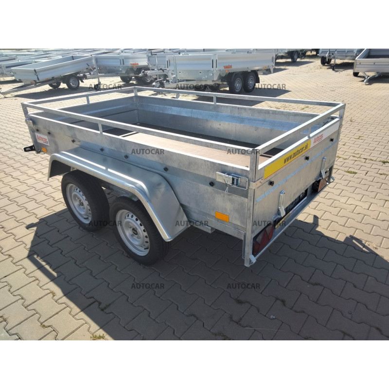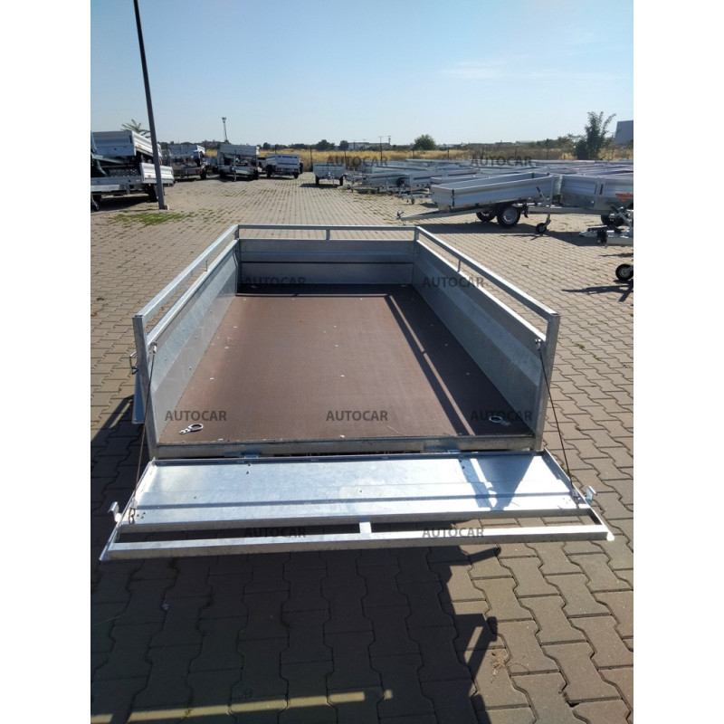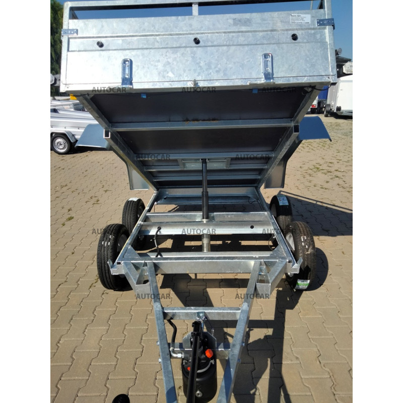 Dvojnápravový jednostranný hydraulicky sklopný prívesný vozík s kolesami uloženými vedľa ložnej plochy. V štandardnej výbave je vybavený: zinkované zvárané bočnice, predná a zadná sa dá demontovať. Konštrukciu tvorí robustná žiarovo zinkovaná zváraná oceľová konštrukcia, ktorá zaručuje dlhoročnú životnosť. V základnej výbave má: 4x kotviace oko v podlahe, podlaha z vodovzdornej preglejky, oporné koleso.