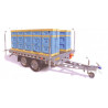 Jednonápravový nákladný valníkový vozík na prepravu úľov s kolesami uloženými pod ložnou plochou.