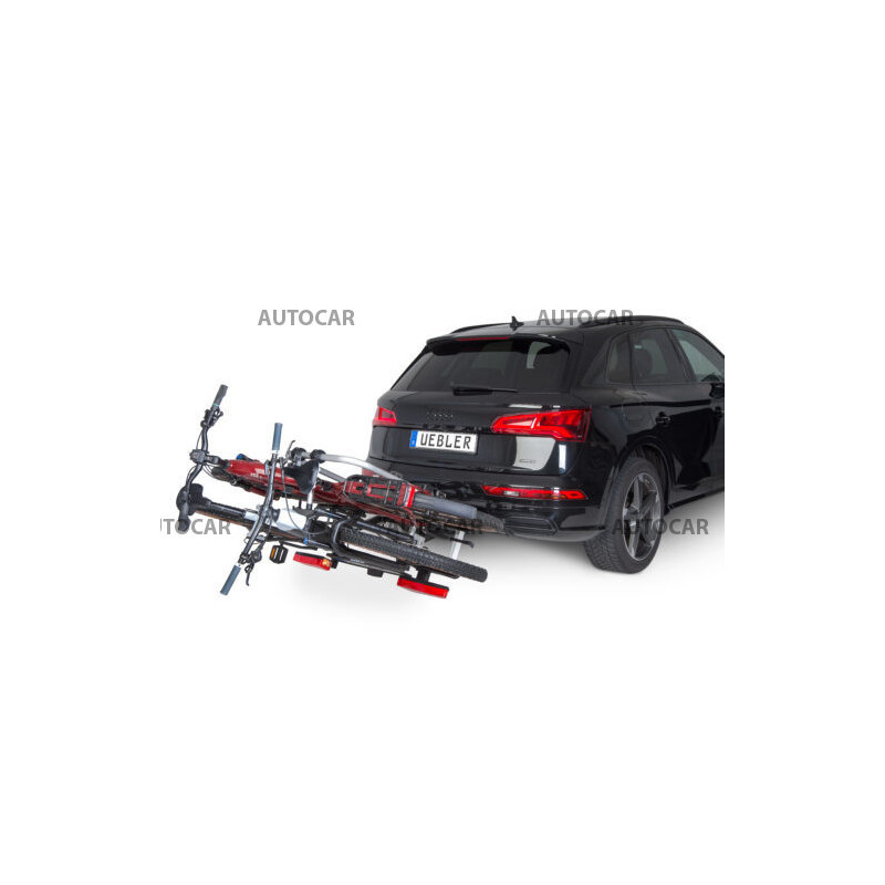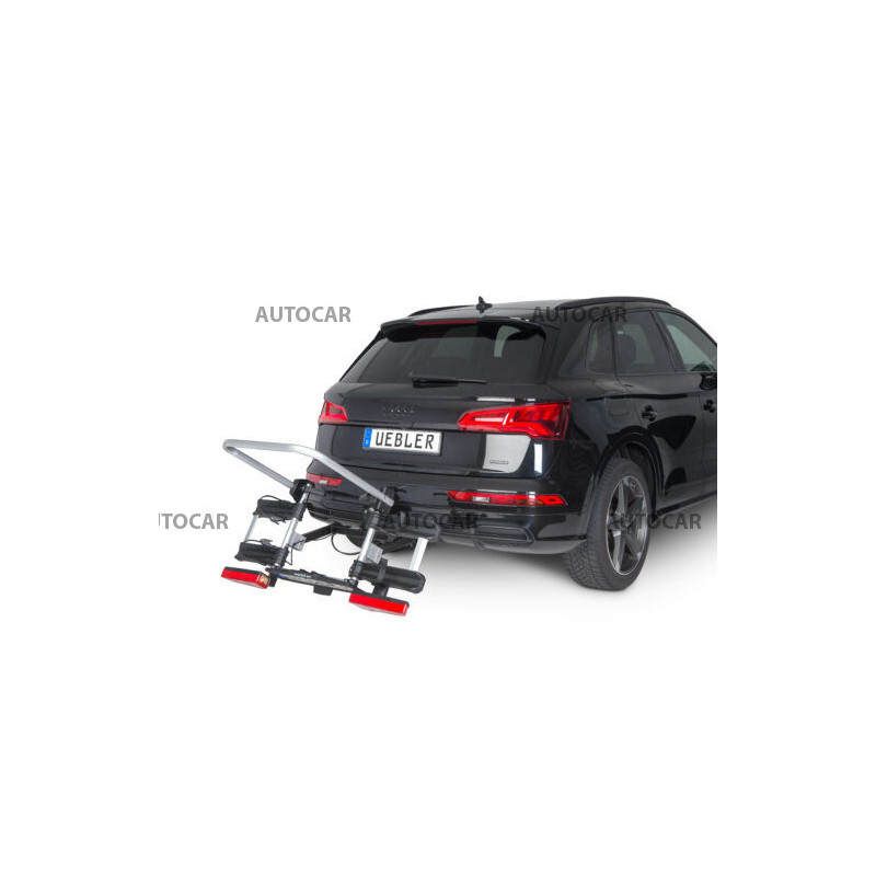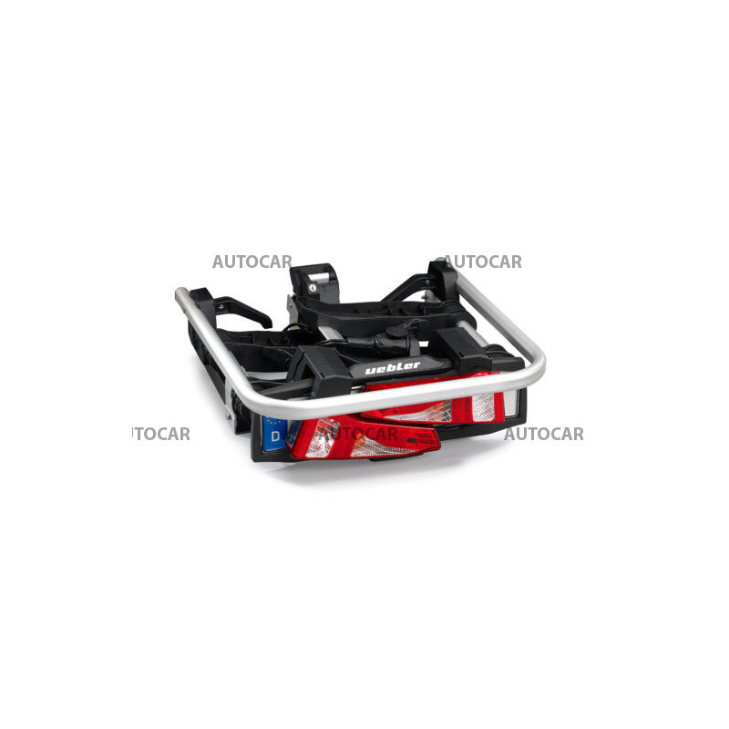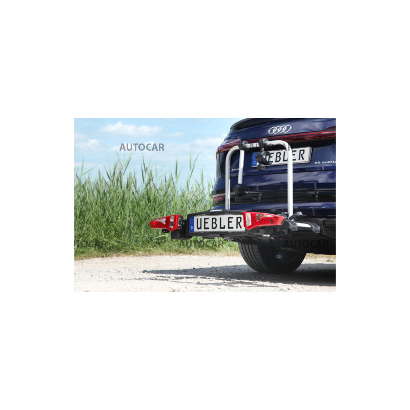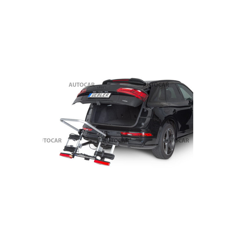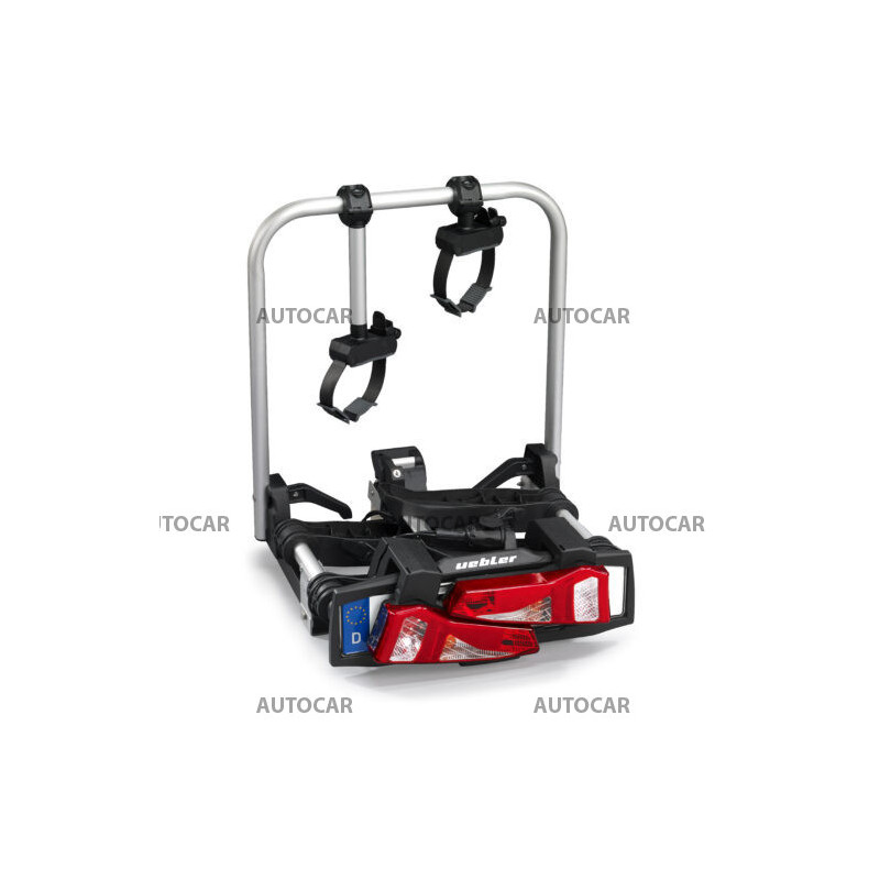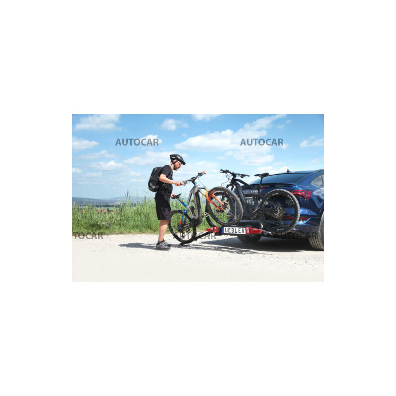 Ľahký a spratný nosič pre 2 bicykle s parkovacími senzormi, 90° odklápanie pre VW T6, T7, V-class, ProAce Verso s jednoduchou inštaláciou na ťažné zariadenie vďaka rýchloupínaciemu systému IQ s uchytením bicyklov pomocou ramien s pásom pre široké rámy bicyklov