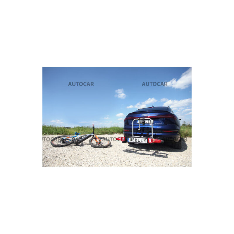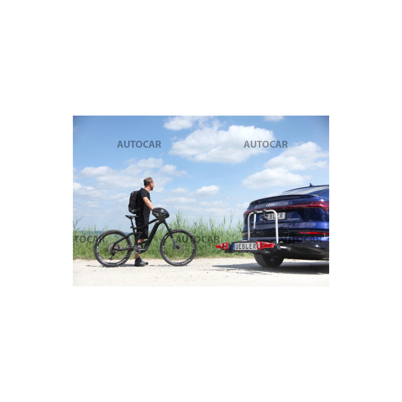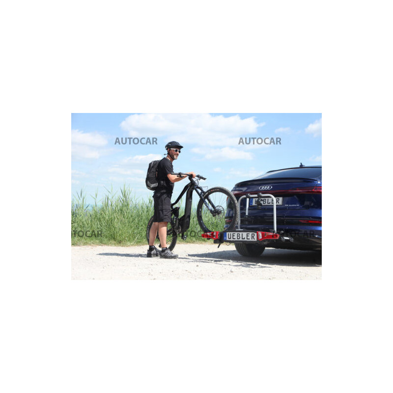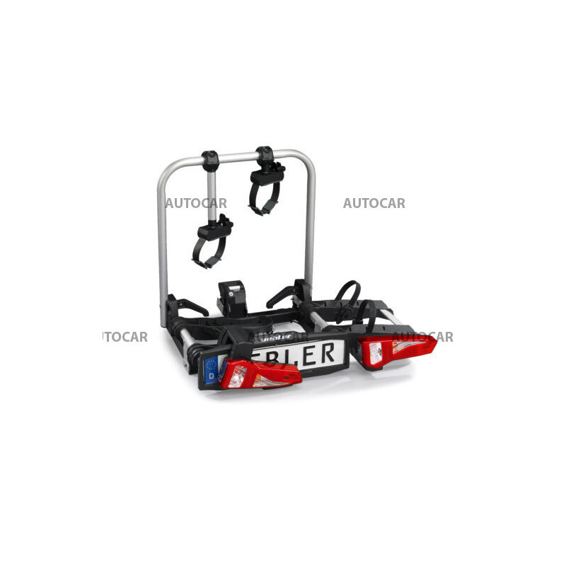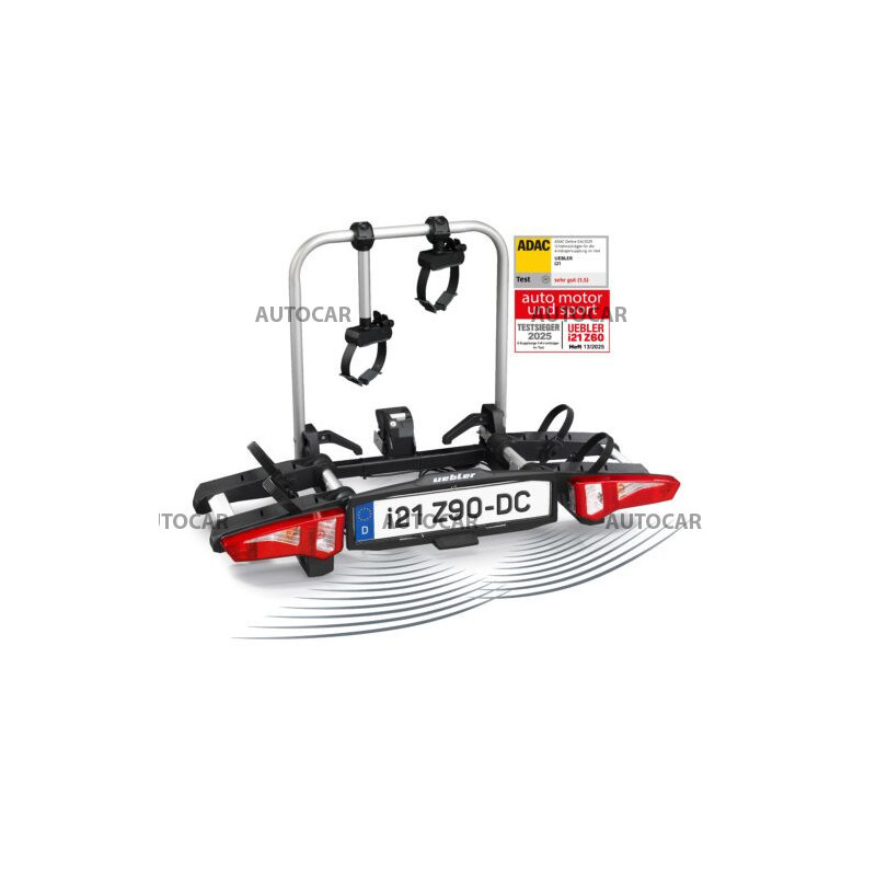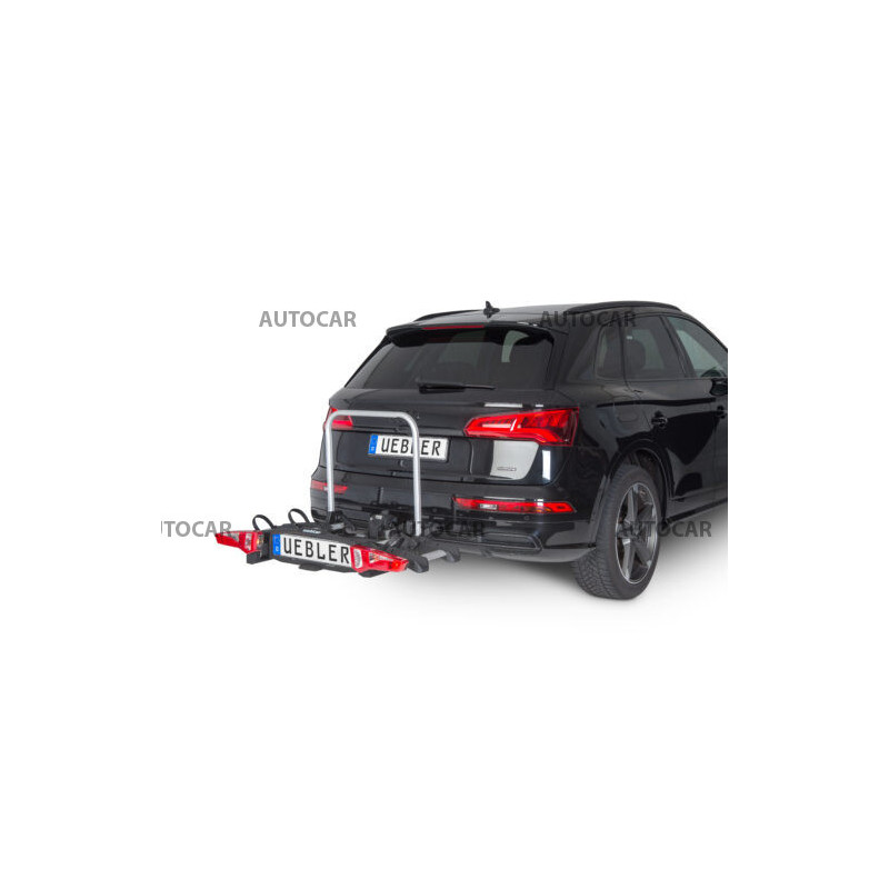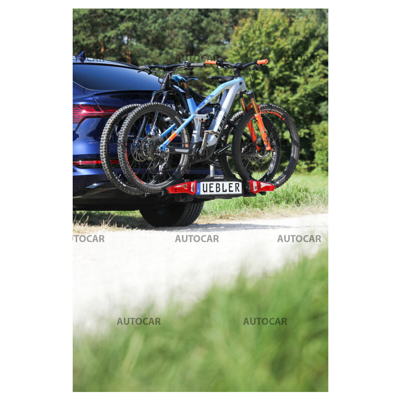 Ľahký a spratný nosič pre 2 bicykle s parkovacími senzormi, 90° odklápanie pre VW T6, T7, V-class, ProAce Verso s jednoduchou inštaláciou na ťažné zariadenie vďaka rýchloupínaciemu systému IQ s uchytením bicyklov pomocou ramien s pásom pre široké rámy bicyklov