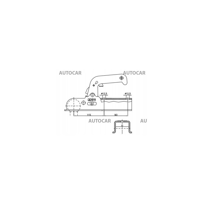 Štandardný prívesný kĺb do 1500 kg pre nebrzdené prívesy. Určený na montáž na štvorhran so šírkou 60 mm a roztečou montážnych otvorov 90mm.