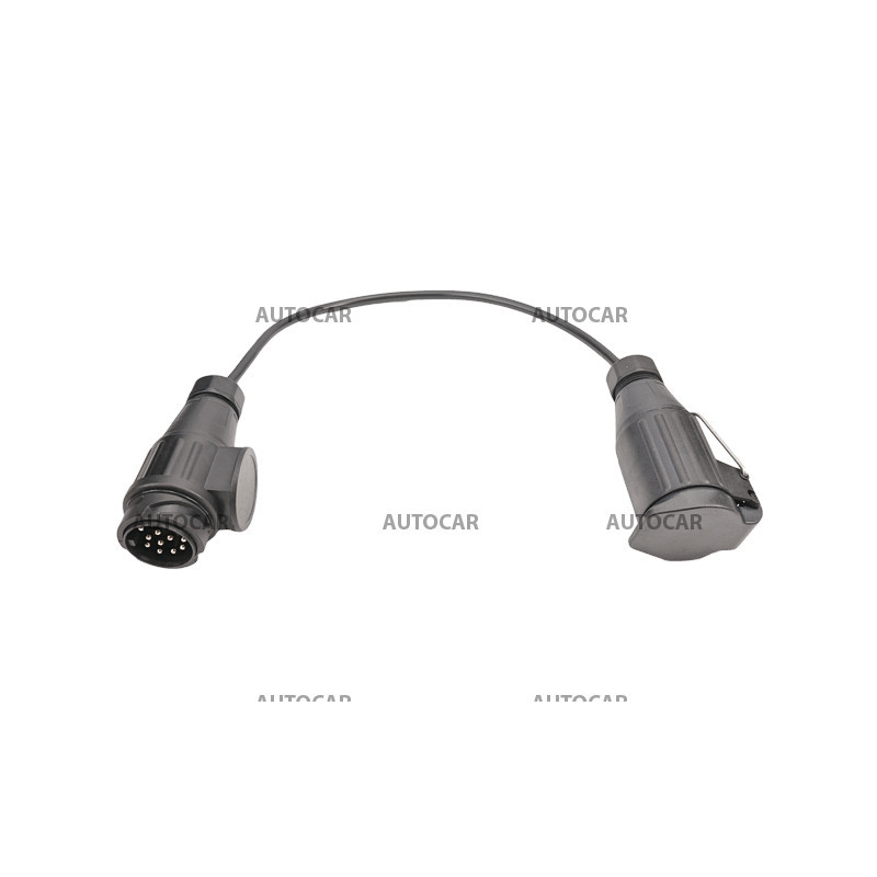 Káblový adaptér na pripojenie prívesu s 13-kolíkovou zástrčkou do auta s 13-kolíkovou zásuvkou. Skladá sa z 13-kolíkovej káblovej zásuvky, 13-kolíkovej zástrčky a kábla YLYs 7x0,75mm2+1x1,00mm2 určeného pre automobilový priemysel.