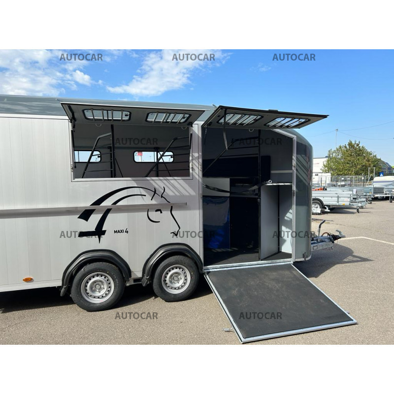 Príves na prevoz štyroch koní MAXI 4 od francúzskej spoločnosti Cheval LIberté s aerodynamickým tvarom. Podvozok prívesu je vybavený nezávislým zavesením a odpružením kolies PULLMAN 2 - KNOTT. Strecha prívesu a predná časť je vyrobená z laminátu z jedného kusa. Steny prívesu a podlaha je vyrobená z hliníkových profilov. Špeciálne upravený unížený žiarovo zinkovaný rám zaručuje pohodlné naloženie koňa a aj vďaka nízkemu uhlu na nástupnej rampe.