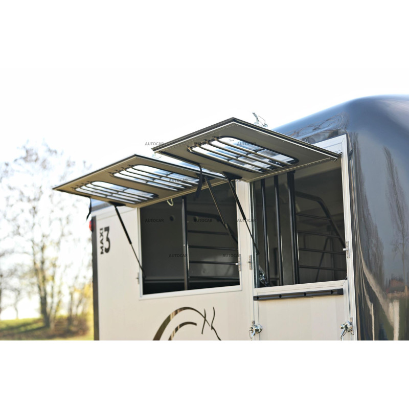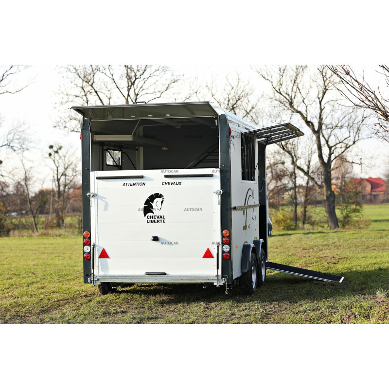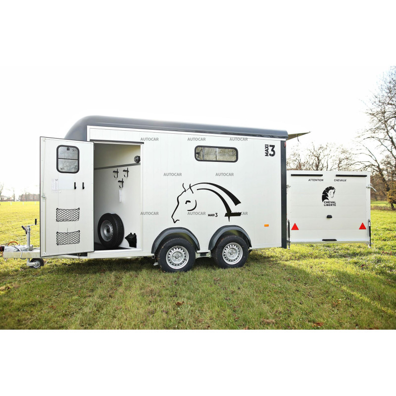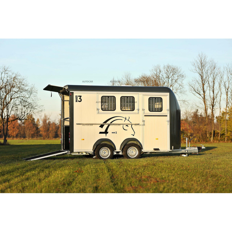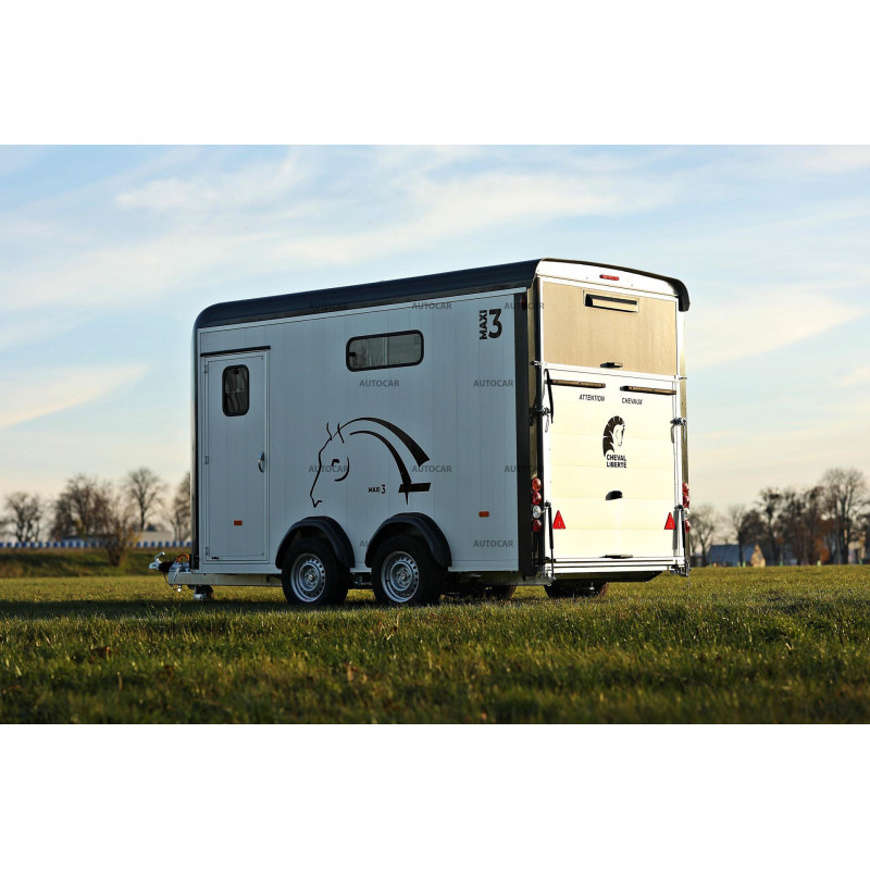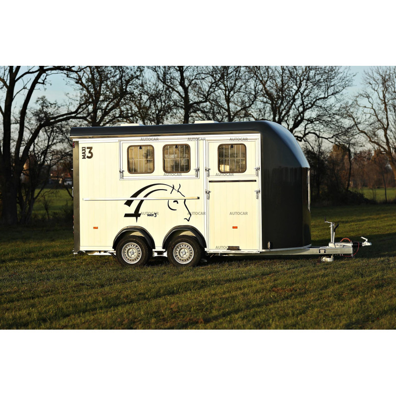 Príves na prevoz troch koní MAXI 3 od francúzskej spoločnosti Cheval LIberté s aerodynamickým tvarom. Podvozok prívesu je vybavený nezávislým zavesením a odpružením kolies PULLMAN 2 - KNOTT. Strecha prívesu a predná časť je vyrobená z laminátu z jedného kusa. Steny prívesu a podlaha je vyrobená z hliníkových profilov. Špeciálne upravený unížený žiarovo zinkovaný rám zaručuje pohodlné naloženie koňa a aj vďaka nízkemu uhlu na nástupnej rampe.