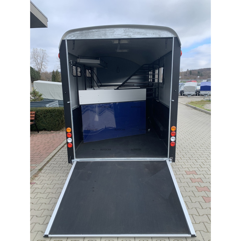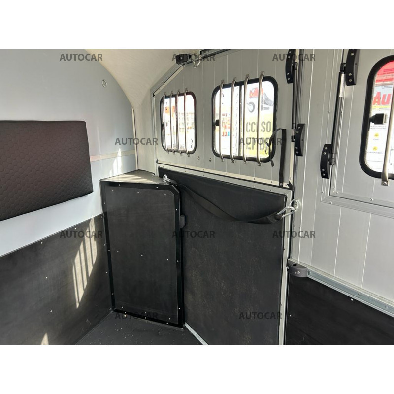 Príves na prevoz štyroch koní MAXI 4 od francúzskej spoločnosti Cheval LIberté s aerodynamickým tvarom. Podvozok prívesu je vybavený nezávislým zavesením a odpružením kolies PULLMAN 2 - KNOTT. Strecha prívesu a predná časť je vyrobená z laminátu z jedného kusa. Steny prívesu, podlaha a polica je vyrobená z hliníkových profilov. Špeciálne upravený znížený, žiarovo zinkovaný rám zaručuje pohodlné naloženie koňa a aj vďaka nízkemu uhlu na nástupnej rampe.