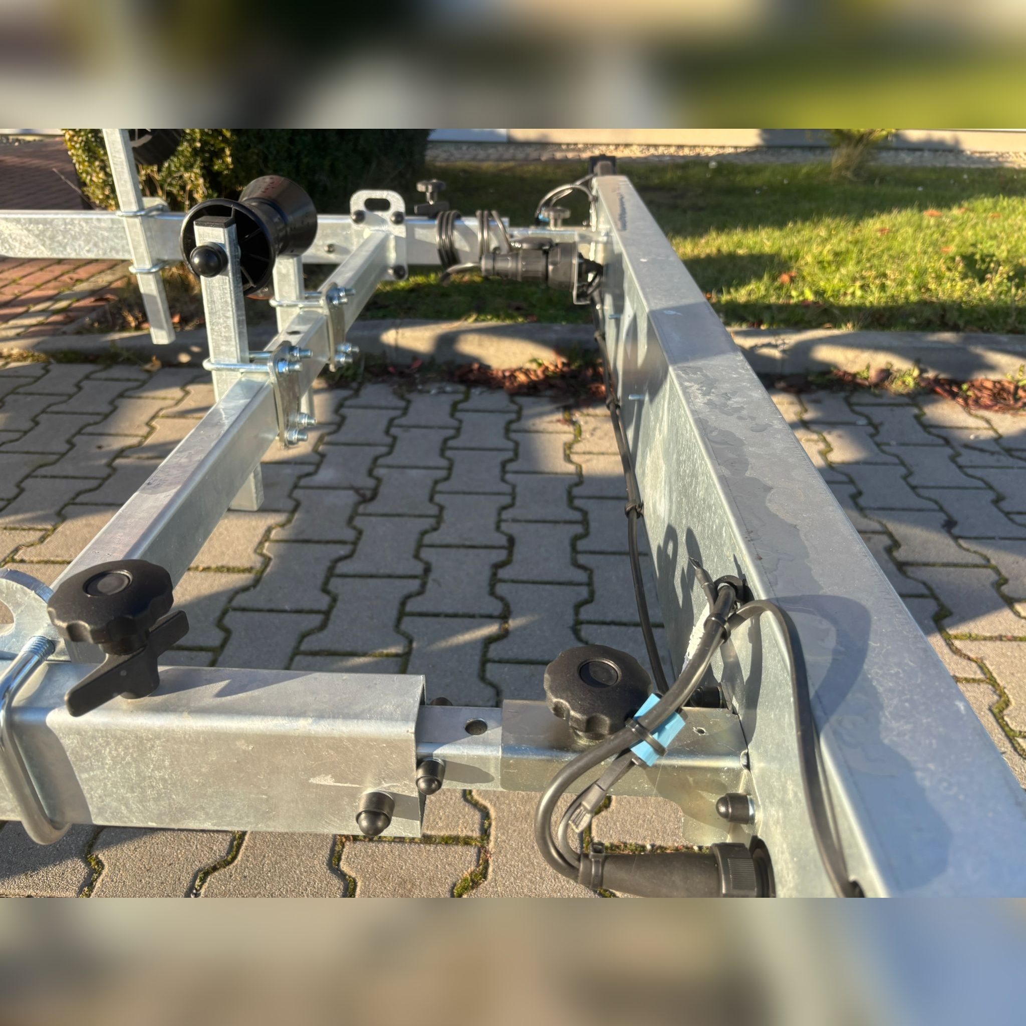 Jednonápravový nebrzdený prívesný vozík s rolňami určený na prevoz lodí s maximálnou dĺžkou 5600 mm. Oceľový rám vozíka je žiarovo pozinkovaný čo predlžuje jeho životnosť aj pri náročných podmienkach. V základnej výbave je kvalitný KNOTT navijak s navíjacím pásom, stredové kýlové roľne 4ks, bočné rolne 4ks, kompletné LED osvetlenie prívesu gumený V doraz na špic lode, oporné koliesko. Zadná svetelná rampa sa dá odobrať, bez použitia špeciálneho náradia, vďaka čomu je možné s prívesom zacúvať priamo do vody a spustiť loď / čln za pomoci navijaku. Dĺžku prívesu si viete prispôsobiť podľa potreby. Tak isto je polohovateľná aj náprava prívesu, aby ste vedeli lepšie rozložiť ťažisko.