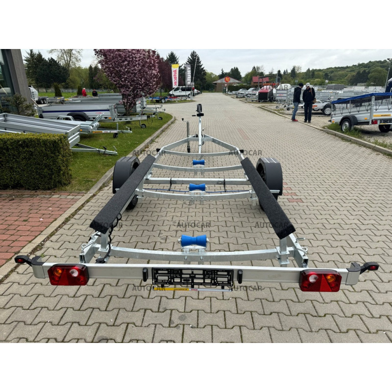 Jednonápravový brzdený prívesný vozík určený na prevoz lodí s maximálnou dĺžkou 6000 mm. Oceľový rám vozíka je žiarovo pozinkovaný čo predlžuje jeho životnosť aj pri náročných podmienkach. V základnej výbave je kvalitný KNOTT navijak s navíjacím pásom, stredové kýlové roľne 3ks, podporné lyžiny 2ks, gumený V doraz na špic lode, oporné koliesko. Zadná svetelná rampa sa dá dômyselne odobrať, bez použitia špeciálneho náradia, vďaka čomu je možné s prívesom zacúvať priamo do vody a spustiť loď / čln za pomoci navijaku. Dĺžku prívesu si viete prispôsobiť podľa potreby. Tak isto je polohovateľná aj náprava prívesu, aby ste vedeli lepšie rozložiť ťažisko.