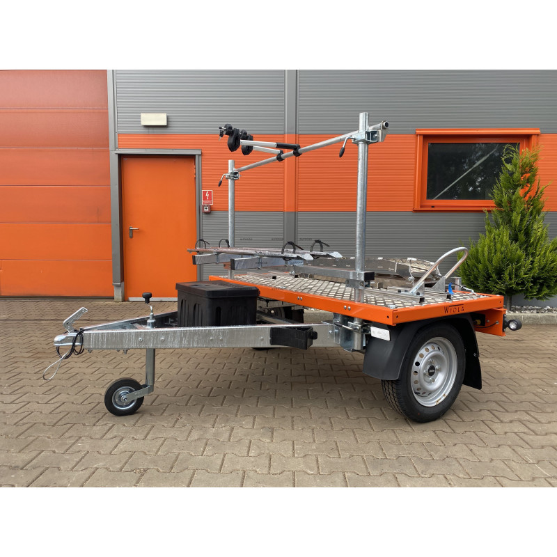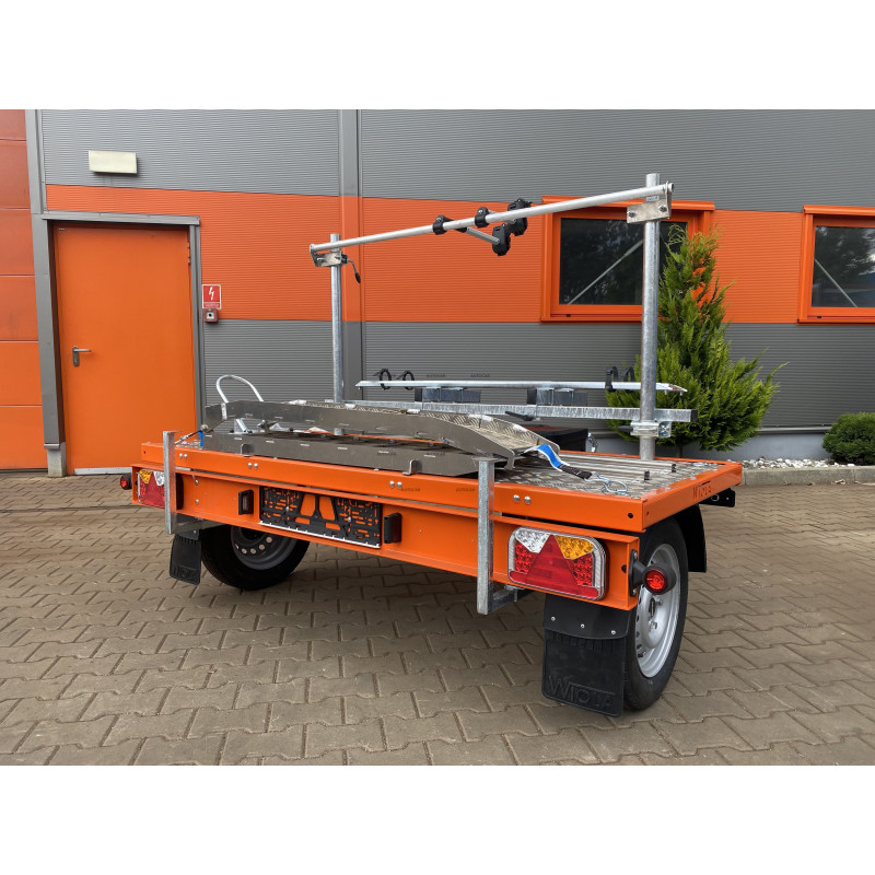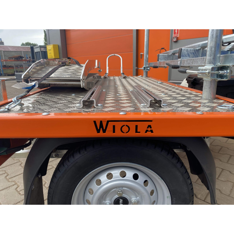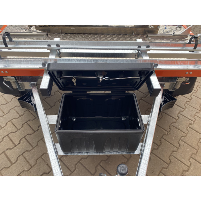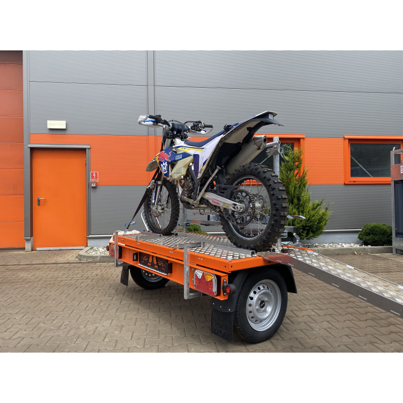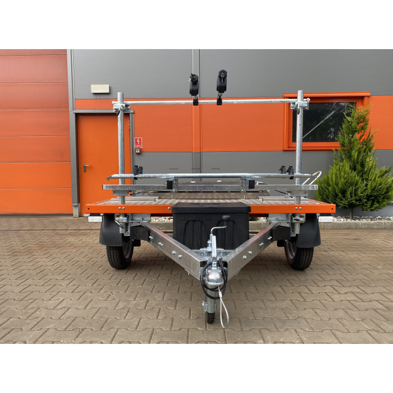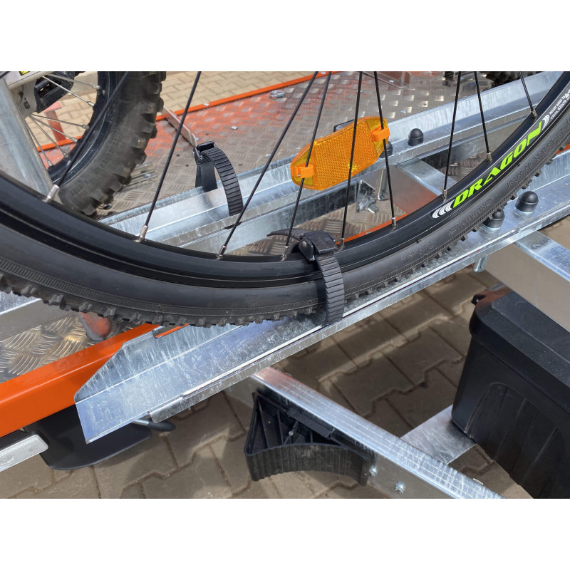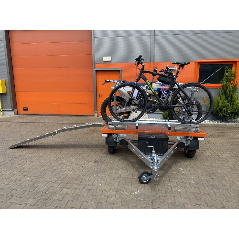 Horná hliníková konštrukcia spolu s podlahou z ryhovaného plechu je vybavená 6 podlahovými úchytmi. Držiak na motocykel má nastaviteľný rozostup, vďaka čomu ho prispôsobíme dĺžke motocykla. Rám hornej konštrukcie bol práškovo lakovaný na oranžovú farbu. V prednej časti sa nachádzajú 2 držiaky na bicykle s žľabom a upevňovacím pásom na kolesá a oblúkom slúžiacim na uchytenie rámu bicykla – celé je uzamknuté zámkom na kľúč.