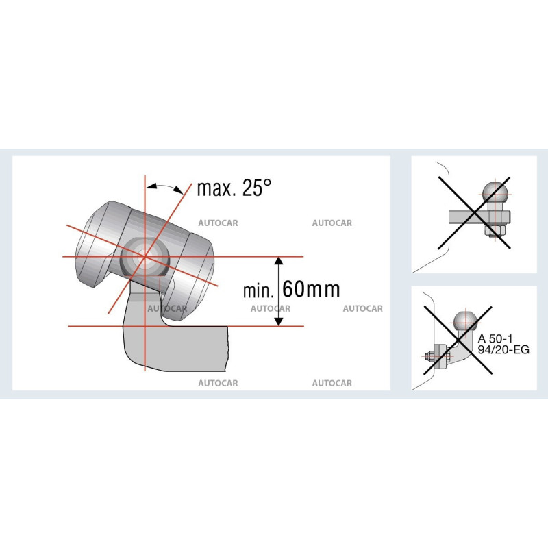 Prívesný kĺb AKS 3504 s integrovaným zabezpečením proti krádeži a Safety Ball, do 3500 kg, zaťaženie 350 kg, vhodný na oje kruhového prierezu Ø 60 mm vŕtanie (veľkosť diery na uchytenie) 16,2 mm
