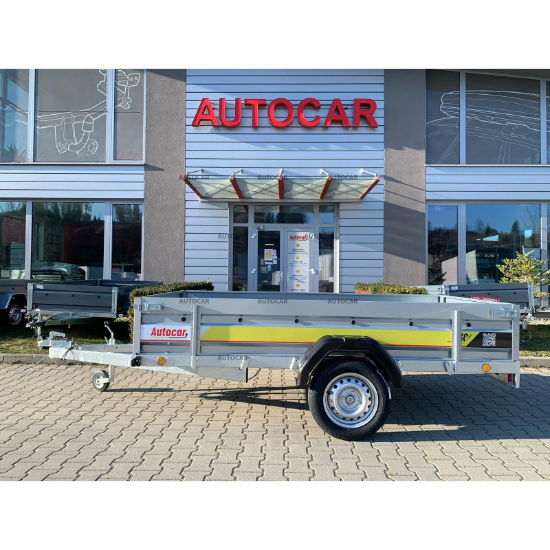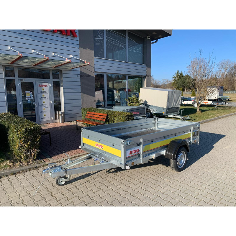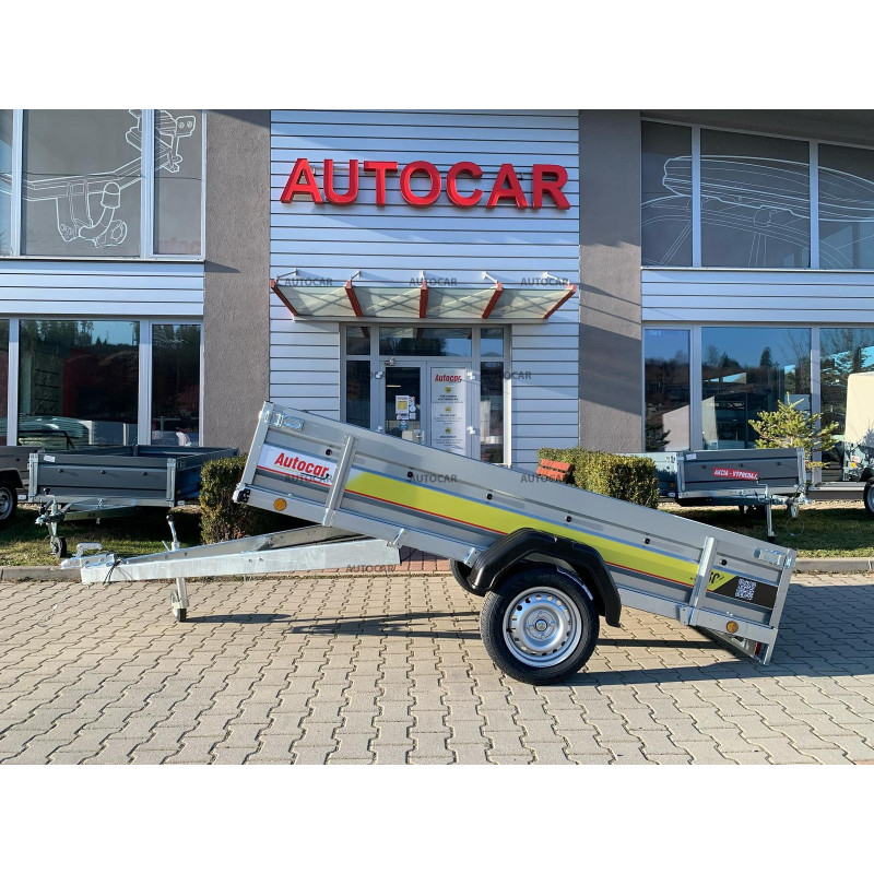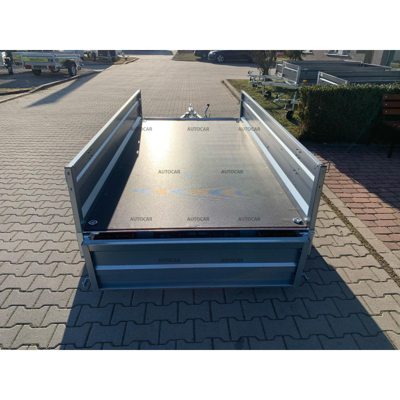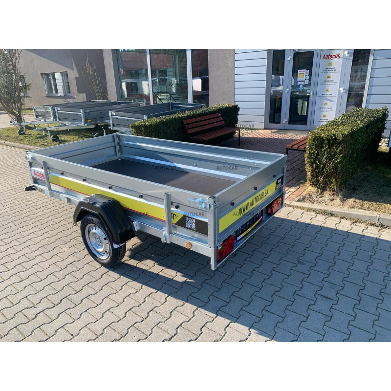 Sklopný jednonápravový nebrzdený príves s robustným zváraným rámom (8 cm) a priečnym vystužením zabezpečuje stabilitu a odolnosť. Ložná plocha 2630 × 1330 mm s bočnicami 390 mm (hrúbka 1 mm) poskytuje dostatok priestoru. Vodeodolná preglejková podlaha s okami umožňuje bezpečné uchytenie nákladu. Vozík má sklopnú konštrukciu na oji (9 cm) pre jednoduché nakladanie, predné otváracie čelo a oporné koliesko v cene. Spoľahlivý a praktický pomocník na prepravu rôzneho nákladu.
