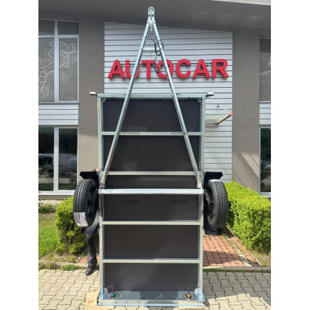 Jednonápravový nebrzdený prívesný vozík s celorámovou konštrukciou výšky 6cm a so štyrmi priečnymi výstuhami zabezpečuje vysokú pevnosť a stabilitu aj pri plnom zaťažení. Pre bezpečné uchytenie nákladu sú v podlahe umiestnené štyri kotviace oká. Vozík je vybavený silnými profilovanými bočnicami vyrobenými z pozinkovaného plechu, čo zaručuje dlhú životnosť a ochranu proti korózii. Výška oja je až 9cm. Zadná bočnica je otvárateľná a odnímateľná, čo uľahčuje nakladanie a vykladanie tovaru.