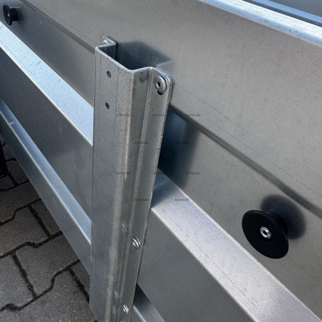 Jednonápravový nebrzdený prívesný vozík s celorámovou konštrukciou výšky 8,5cm a so štyrmi priečnymi výstuhami zabezpečuje vysokú pevnosť a stabilitu aj pri plnom zaťažení. Pre bezpečné uchytenie nákladu sú v podlahe umiestnené štyri kotviace oká. Vozík je vybavený silnými profilovanými bočnicami vyrobenými z pozinkovaného plechu, čo zaručuje dlhú životnosť a ochranu proti korózii. Zadná bočnica je otvárateľná a odnímateľná, čo uľahčuje nakladanie a vykladanie tovaru. Tiež má výstuhu bočníc spojenú s rámom pre väčšiu odolnosť voči ohnutiu.