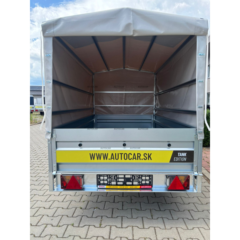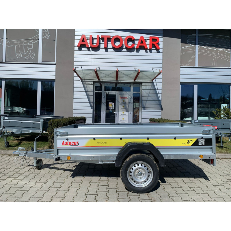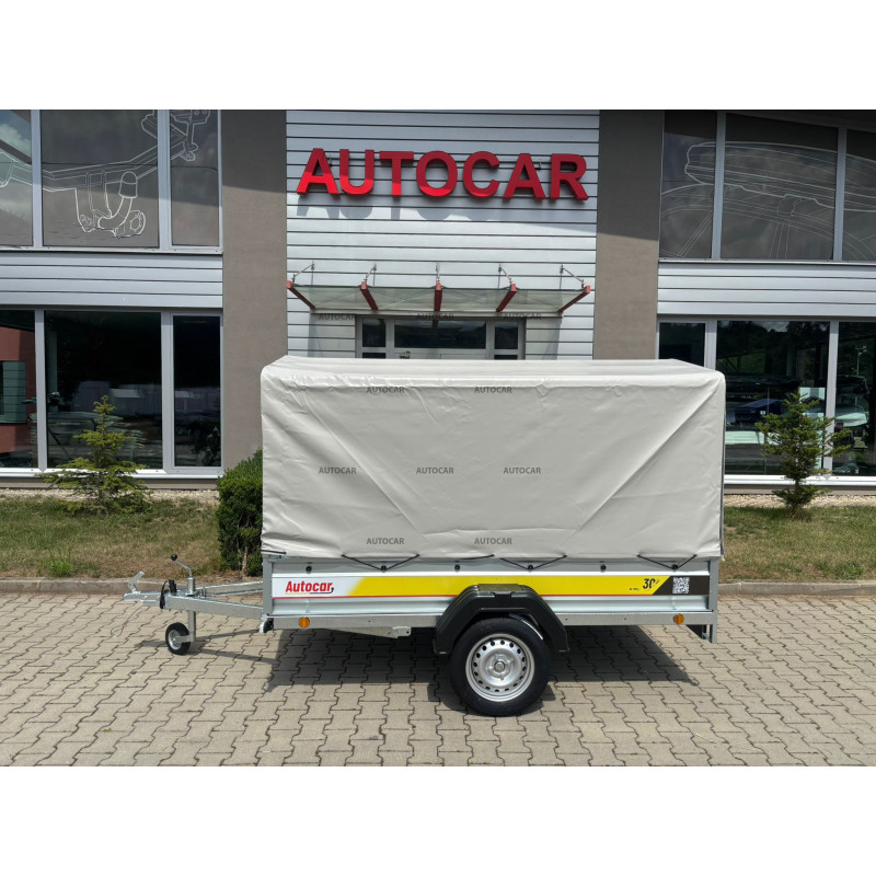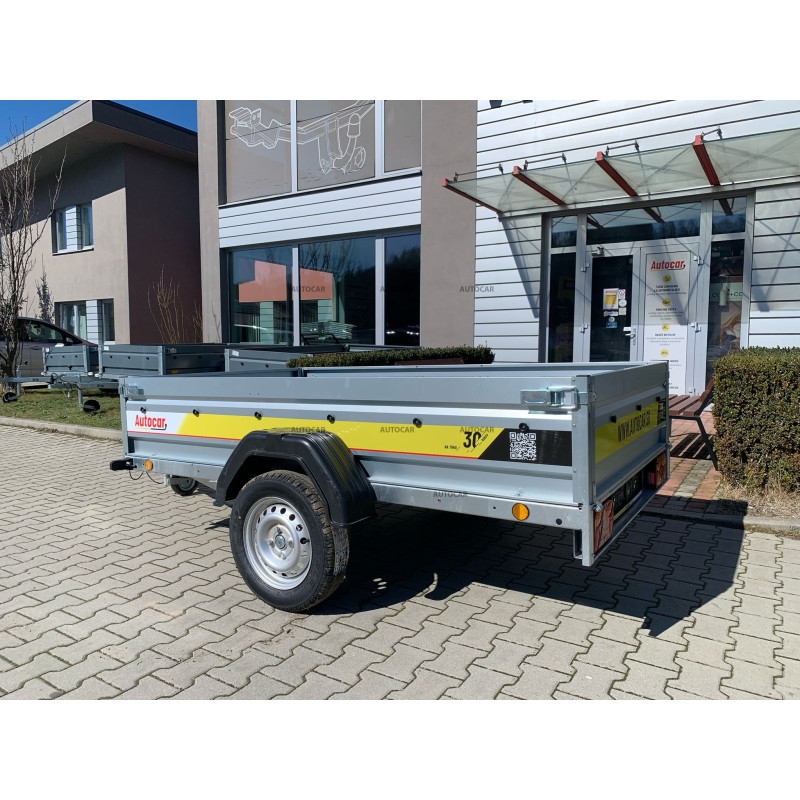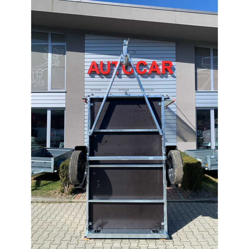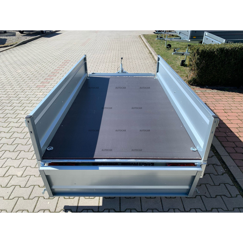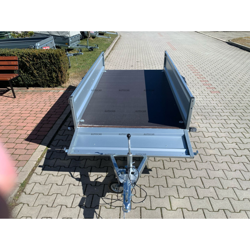 Sklopný jednonápravový nebrzdený príves s plachtou výšky 140cm od podlahy prívesu a s robustným zváraným rámom (7 cm), 3x priečnym vystužením zabezpečuje stabilitu a odolnosť. Ložná plocha 2430 × 1330 mm s bočnicami 390 mm (hrúbka 1 mm) poskytuje dostatok priestoru. Vodeodolná preglejková podlaha s okami umožňuje bezpečné uchytenie nákladu. Vozík má sklopnú konštrukciu na oji (8 cm) pre jednoduché nakladanie, predné otváracie čelo a oporné koliesko v cene. Spoľahlivý a praktický pomocník na prepravu rôzneho nákladu.