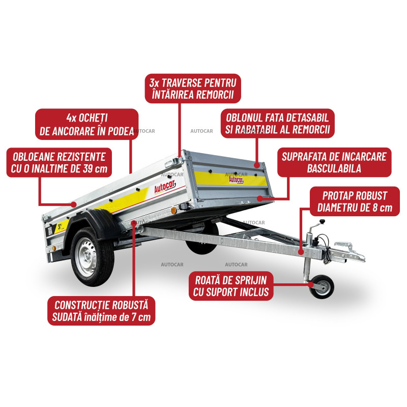 Sklopný jednonápravový nebrzdený príves s plachtou výšky 140cm od podlahy prívesu a s robustným zváraným rámom 7cm 3x priečnym vystužením predstavuje spoľahlivé riešenie pre prepravu každého nákladu. Jeho rám U profilu a oje C profilu sú vyrobené z materiálu hrubého až 2,5mm. Jeho široká ložná plocha s rozmermi 2430 x 1330 a výškou bočnice 390mm, hlavná je však hrúbka bočnice až 1mm ktoré zaručujú pevnosť a odolnosť. Tento vozík je vybavený vode odolnou preglejkovou podlahou s podlahovými okami. Sklopná konštrukcia na oji výšky 8cm umožňuje ľahké nakladanie a vykladanie nákladu, čo robí tento prívesný vozík vhodným pre rôzne prepravné potreby. Okrem sklápania má príves aj predné otváracie čelo a oporné koliesko v cene.