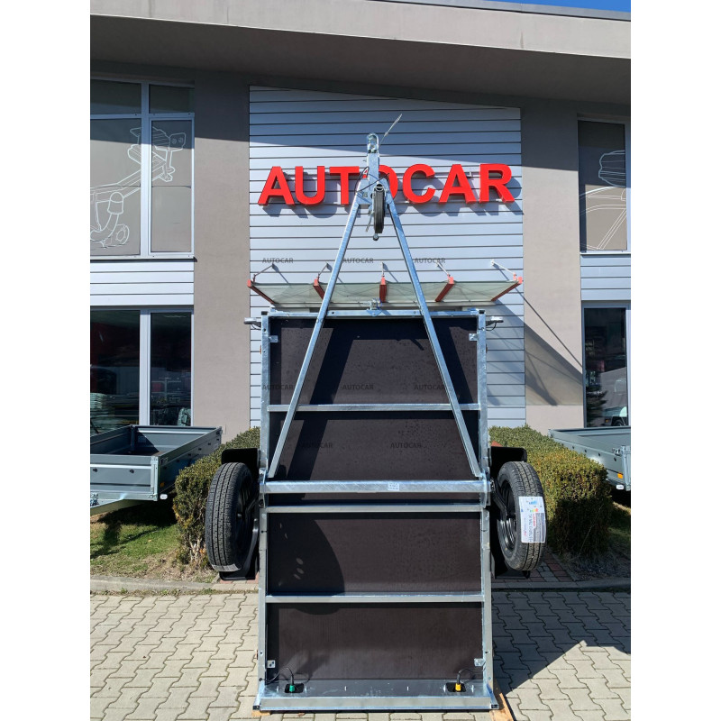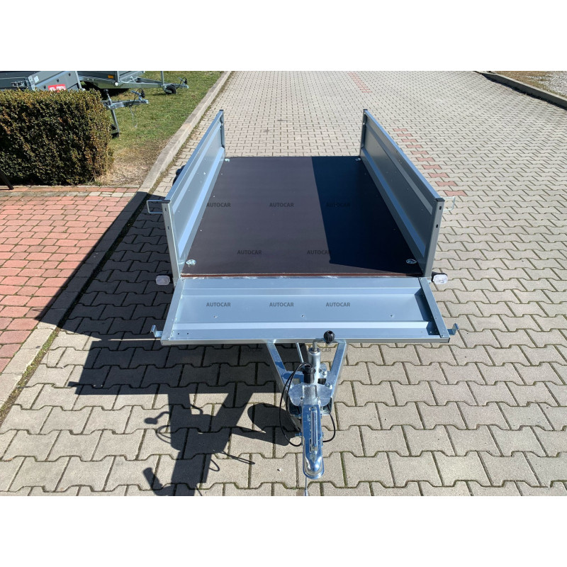 Sklopný jednonápravový nebrzdený príves s plachtou výšky 120cm od podlahy prívesu a s robustným zváraným rámom (7 cm), 3x priečnym vystužením zabezpečuje stabilitu a odolnosť. Ložná plocha 2060 x 1230 mm s bočnicami 390 mm (hrúbka 1 mm) poskytuje dostatok priestoru. Vodeodolná preglejková podlaha s okami umožňuje bezpečné uchytenie nákladu. Vozík má sklopnú konštrukciu na oji (8 cm) pre jednoduché nakladanie, predné otváracie čelo a oporné koliesko v cene. Spoľahlivý a praktický pomocník na prepravu rôzneho nákladu.