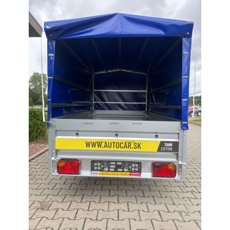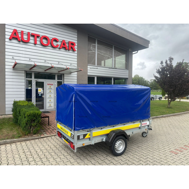 Sklopný jednonápravový nebrzdený príves s plachtou výšky 140cm od podlahy prívesu a s robustným zváraným rámom (7 cm), 4x priečnym vystužením zabezpečuje stabilitu a odolnosť. Ložná plocha 2630 × 1330 mm s bočnicami 390 mm (hrúbka 1 mm) poskytuje dostatok priestoru. Vodeodolná preglejková podlaha s okami umožňuje bezpečné uchytenie nákladu. Vozík má sklopnú konštrukciu na oji (8 cm) pre jednoduché nakladanie, predné otváracie čelo a oporné koliesko v cene. Spoľahlivý a praktický pomocník na prepravu rôzneho nákladu.