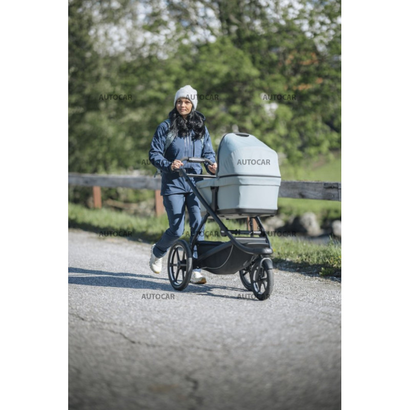 Vďaka otočnému prednému kolesu, ktoré sa pri vyššej rýchlosti zaaretuje, a veľkým zadným kolesám je kočík ľahký a ľahko ovládateľný