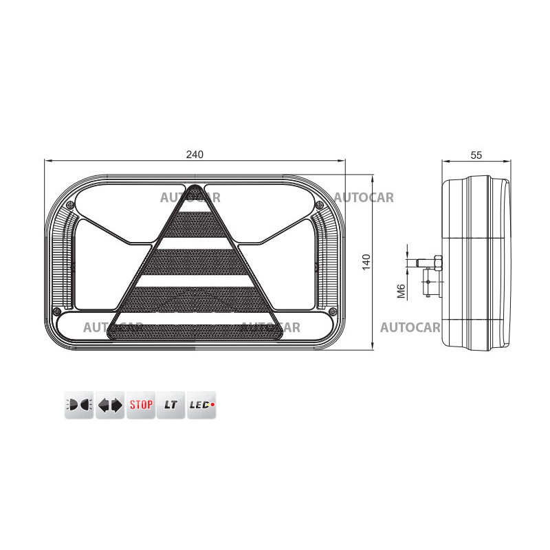 Funkcie: obrysové, brzdové svetlo, smerovka, hmlovka, spiatočka a osvetlenie špz.